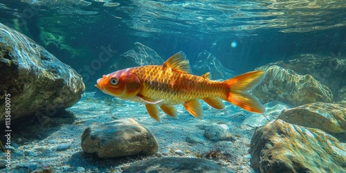 Naklejka premium Fish swimming upstream against the current in a clear mountain stream.