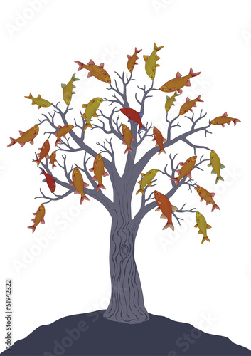 © Alexey Konkov, Fototapeta premium Fish tree on white. Vector drawing.