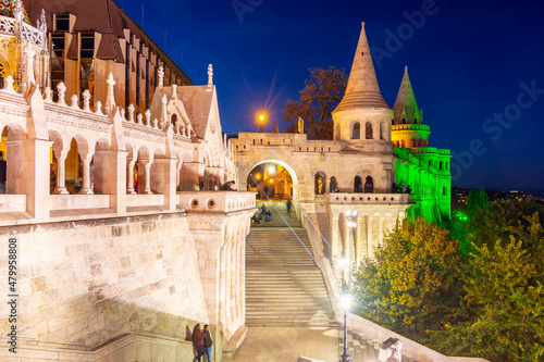 © Mistervlad, Fototapeta premium Fisherman bastion at night, Budapest, Hungary