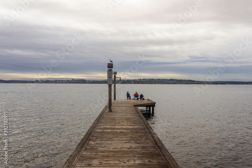 © Chris Fabregas, Obraz premium Fisherman On A Pier