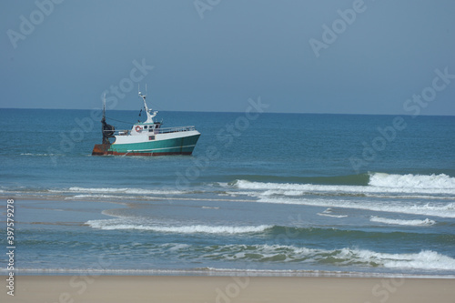 Naklejka premium Fisherman on his boat on the coast
