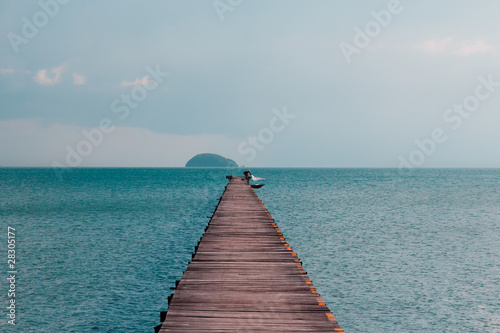 Obraz premium Fisherman on Tropical Island Ocean Pier