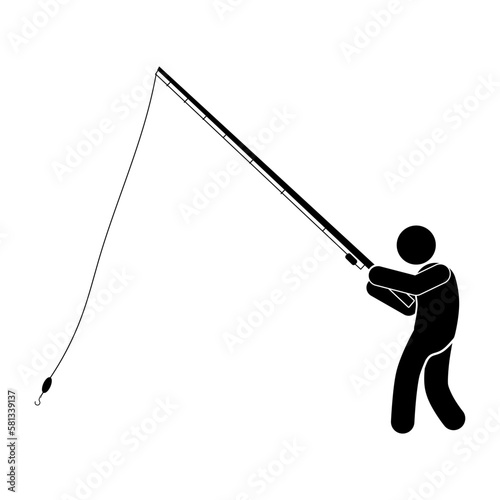 Obraz premium Fisherman silhouette with fishing rod on white background. Vector illustration.