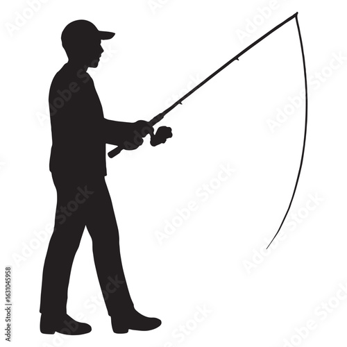 © Arbaz, Obraz premium Fisherman with Rod Black and White Silhouette