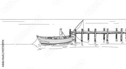 © Burak, Fototapeta premium Fishermans Boat at a Quiet Pier