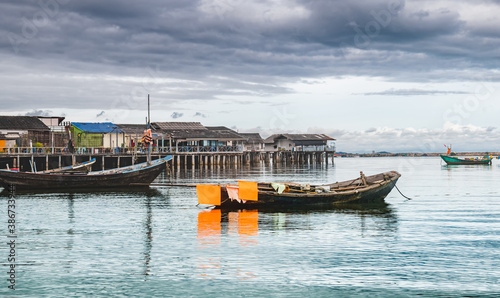 Fototapeta premium Fishery wooden boats with outdoor sun.