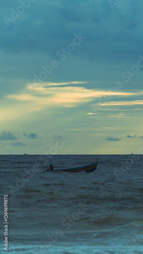 © Rohit, Fototapeta premium fishing boat and beautiful clouds