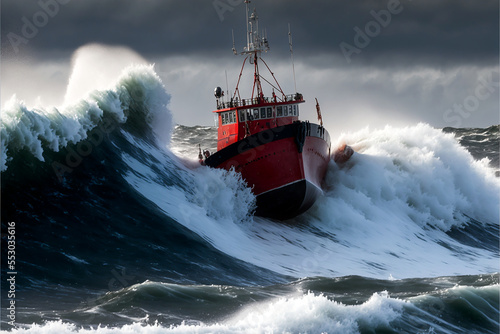 © Umka art, Naklejka premium Fishing boat at stormy sea
