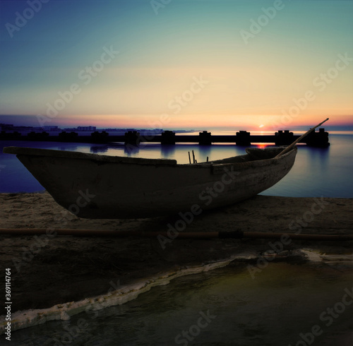 Fototapeta premium fishing boat at sunset