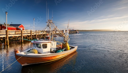© Aaron, Fototapeta premium fishing boat docking at the pier during the day time