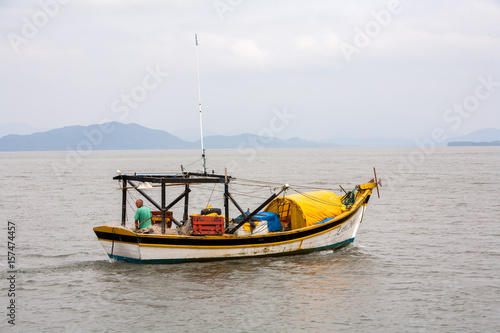 © tacio philip, Fototapeta premium Fishing boat in ocean in Brazil