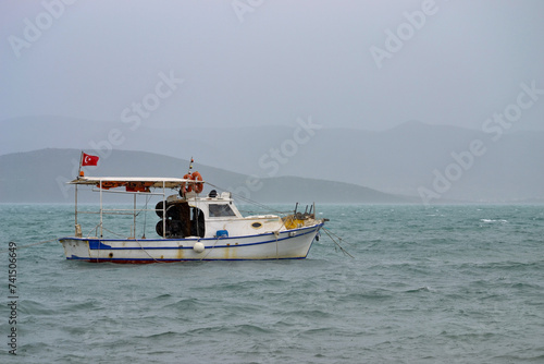 © FatihDama, Fototapeta premium fishing boat in the sea at cesme, izmir