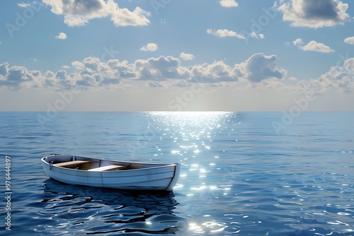 © MahmudulHassan, Naklejka premium Fishing boat in the sea on a background of blue sky