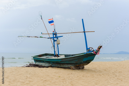 © NUTTANART, Naklejka premium Fishing boat on a beach at ebb tide