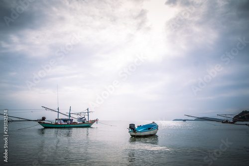 Fototapeta premium Fishing boat on Sairee Beach in the morning, Sairee beach, Chumphon, Thailand.