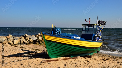 © mar_cin_d, Naklejka premium fishing boat placed on the beach in Gdynia, Poland