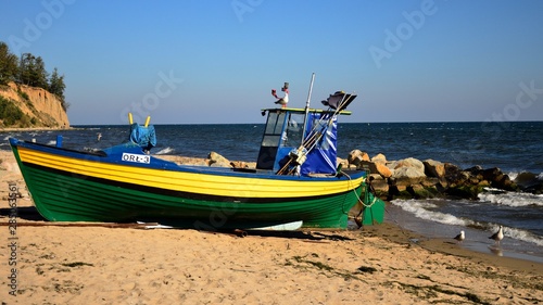 © mar_cin_d, Naklejka premium fishing boat placed on the beach in Gdynia, Poland