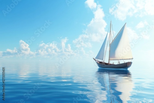 Fototapeta premium fishing boat sailing in a calm blue ocean, serene and peaceful atmosphere,...