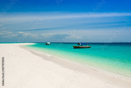 © tan4ikk, Fototapeta premium Fishing Boats Anchoring On Tropical Ocean Shore