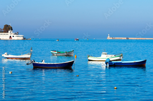 © Sviatoslav Khomiakov, Fototapeta premium Fishing boats are in the city bay.
