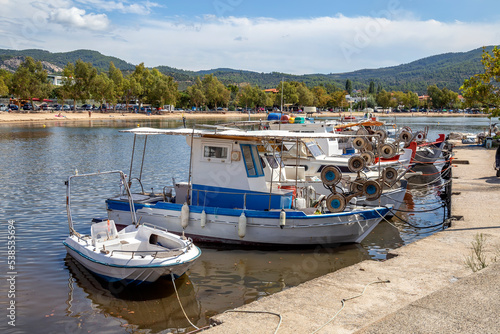 © kalpis, Obraz premium Fishing boats at dock waiting fishermen