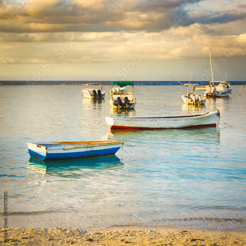© Olga Khoroshunova, Naklejka premium Fishing boats at sunset time.