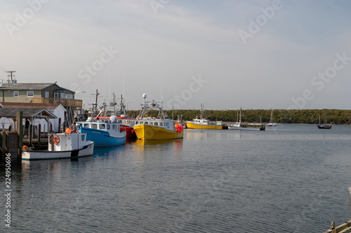 © Kelly Mercer, Fototapeta premium fishing boats in autumn sunshine, dockside, eastern passage nova scotia