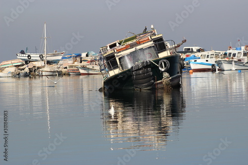 © MustafaKutad, Fototapeta premium fishing boats in harbor