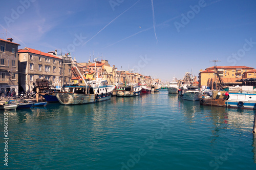 © isaac74, Obraz premium Fishing boats moored in a canal in Chioggia, Italy.