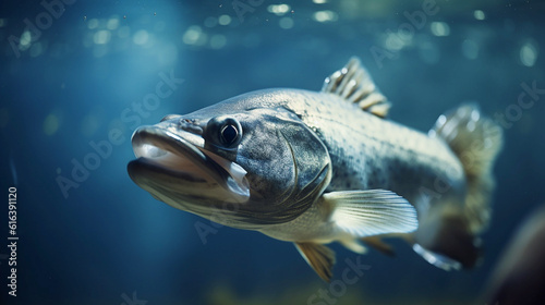Fototapeta premium Fishing. Close-up shut of a zander fish under water. Generative AI