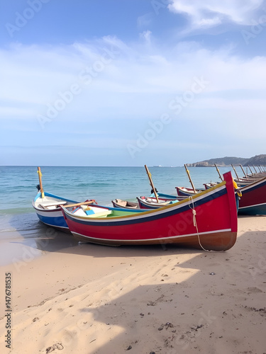 © Cynthia, Naklejka premium Fishing colorful boats on sandy beach, Scilla, Calabria, Italy