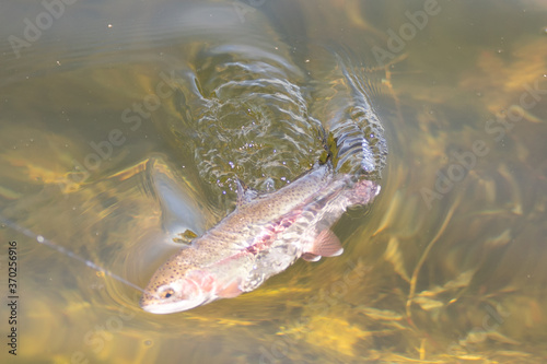 © digidreamgrafix, Obraz premium fishing for trout in a small lake in washington state