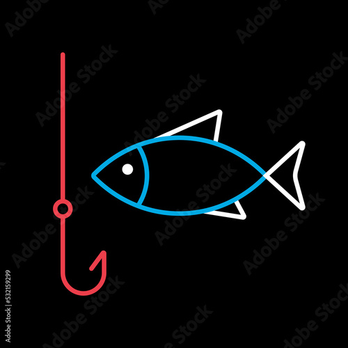 Fototapeta premium Fishing hook with fish vector icon