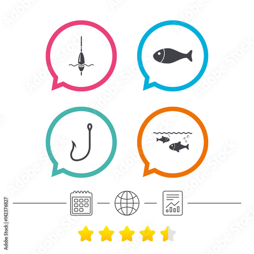 © blankstock, Fototapeta premium Fishing icons. Fish with fishermen hook symbol.