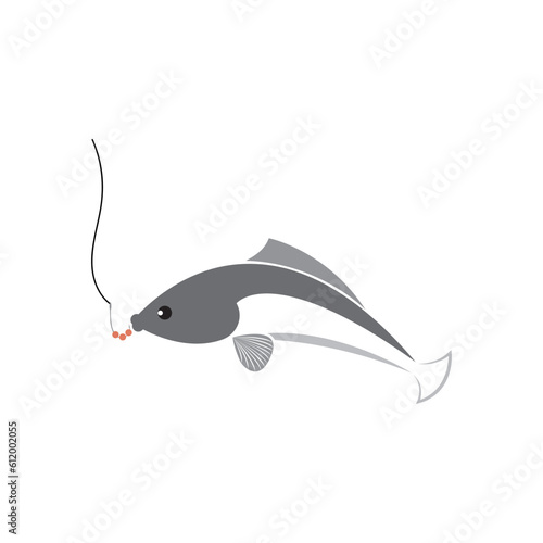 Fototapeta premium Fishing Logo, Fish And Hook Logo Template, Flat Logo Style.