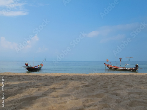 © Tsyb Oleh, Fototapeta premium fishing motor boats moored on the sea coast