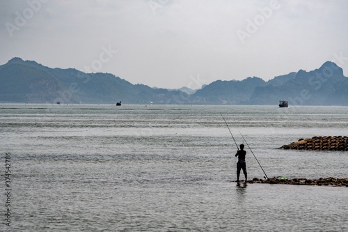 Naklejka premium fishing on the beach