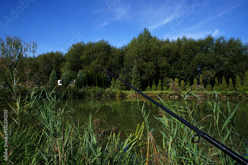 © aRTI01, Fototapeta premium fishing on the pond in summer - rods and water
