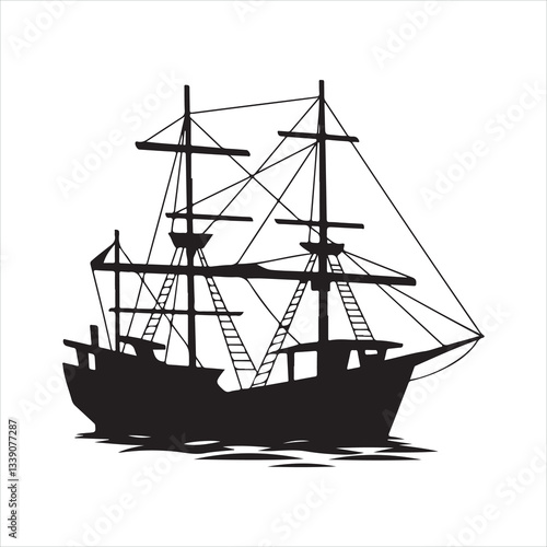 © Arafat, Fototapeta premium Fishing ship deploying nets in the sea Silhouette