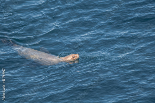 Obraz premium Fishing Steller's Sea Lion (Eumetopias jubatus) at sea off Chowiet Island, Semidi Islands, Alaska, USA
