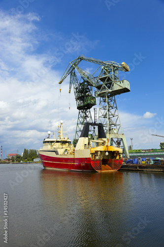 © Nightman1965, Fototapeta premium Fishing vessel in a repair yard.