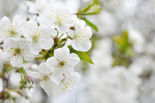 © wolfelarry, Fototapeta premium Fisrt spring cherry blossom flowers