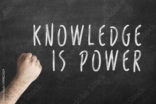 Fototapeta premium fist and text knowledge is power on chalkboard.