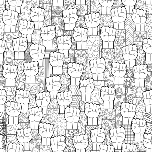 © Krit, Fototapeta premium Fists hands up seamless pattern, vector background