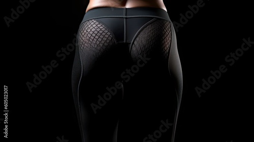 © TeteraX, Naklejka premium Fit and Slim Girl Posing in Trendy Fitness Clothing on Black Background generated by AI