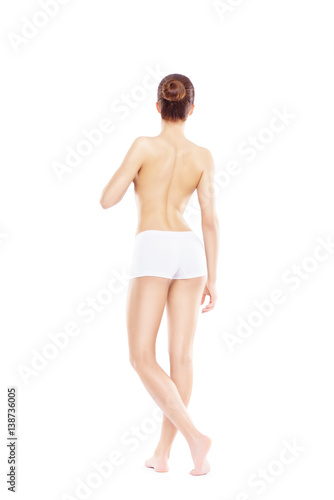 Fototapeta premium Fit, healthy and sporty woman in white underwear isolated on white. Sport, fitness, diet, weight loss and healthcare concept.