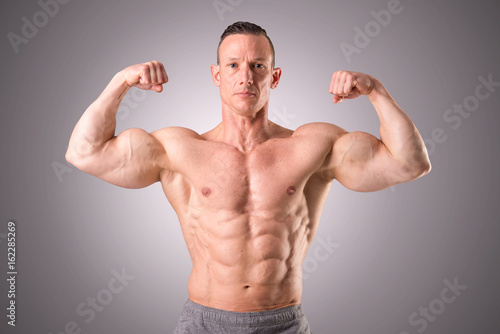 Fototapeta premium fit muscular man posing isolated on a grey background