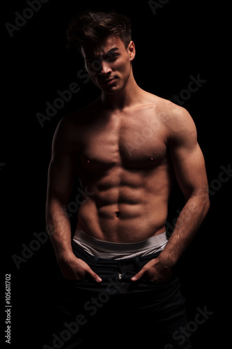 Fototapeta premium fit, muscular, topless man with hands in pockets