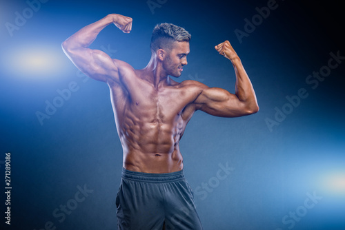 Obraz premium Fit, Muscular Young Men Flexing Muscles