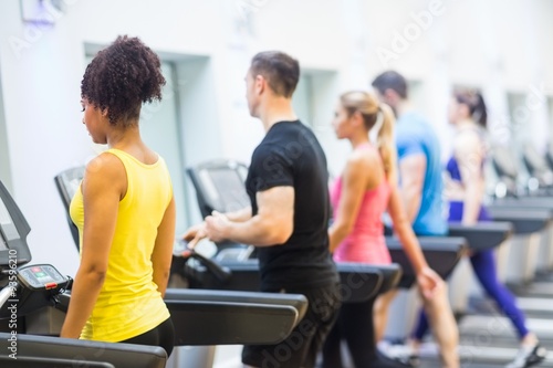 © WavebreakMediaMicro, Obraz premium Fit people walking on treadmills